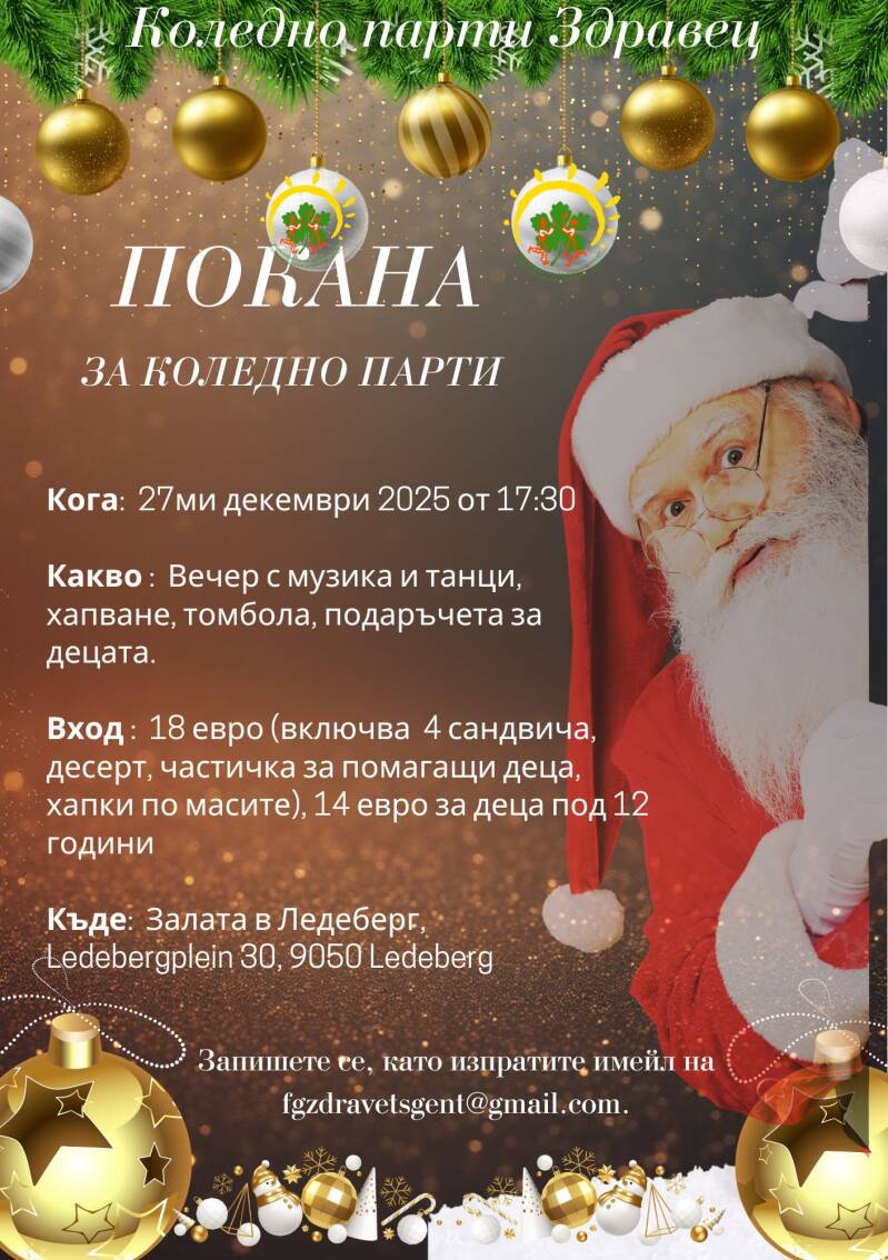 - 27 декември - Коледно хоро, запишете се като изпратоте имейл на fgzdravtsgent@gmail.com